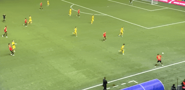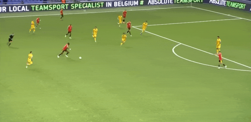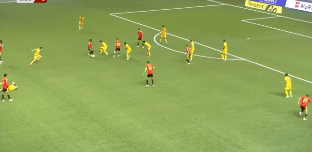 27’比利时前场撞墙协作,范纳肯弧顶抽射攻门未能发上力量