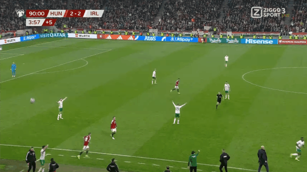 6686体育平台11月17日讯 26赛季世欧预分组赛F组第10轮,爱尔兰3-2战胜匈牙利。竞赛开场不久,卢卡奇闪击破门,随后帕洛特点射绝平,瓦尔加世界波再度逆转局赛果分。下半场最后时刻,帕洛特吊射破门又在最后时刻抢点得手补时最后一投,爱尔兰逆转匈牙利,挺进附加赛。