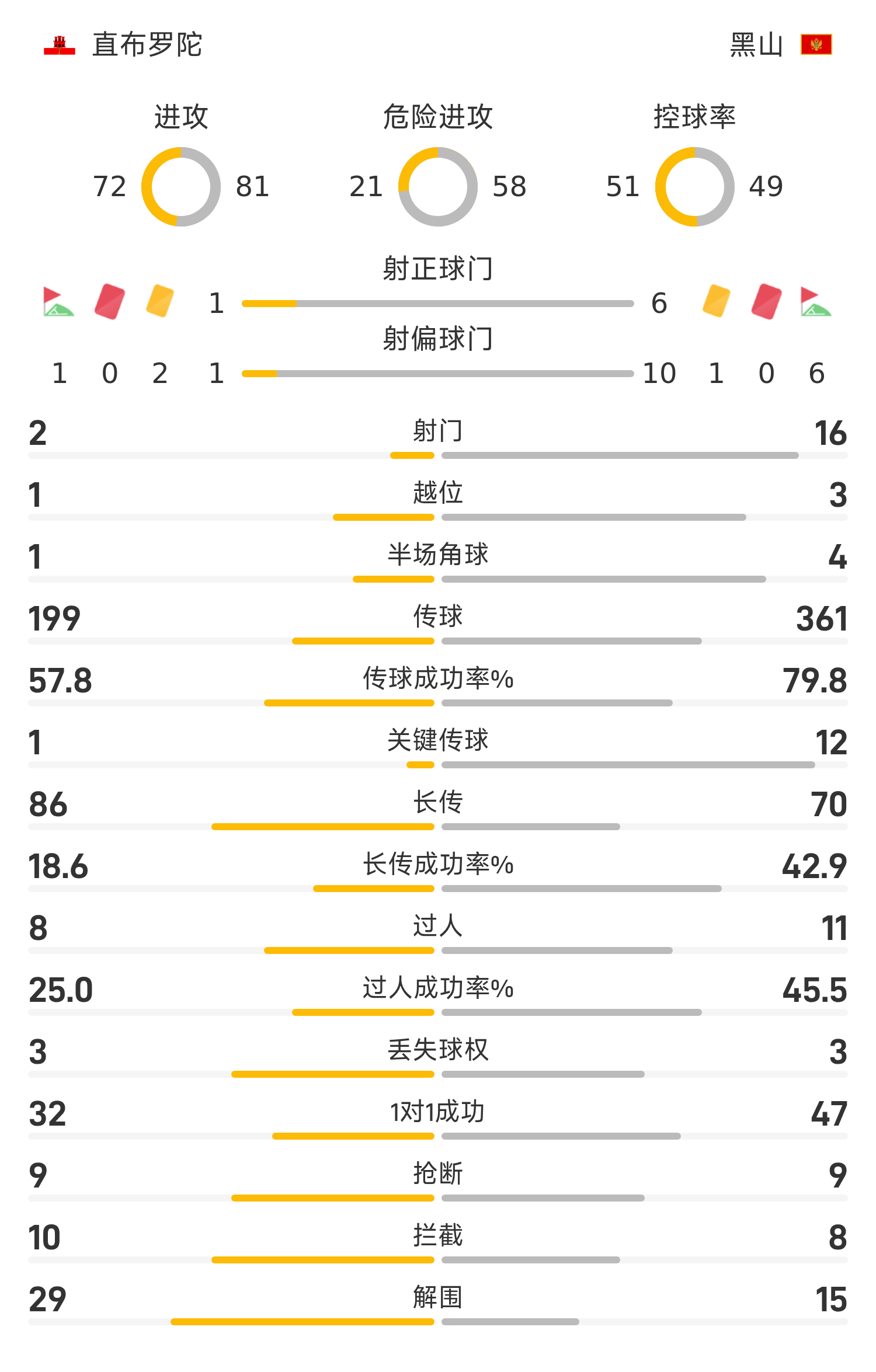 6686体育平台11月15日讯 世欧预分组赛L组第9轮,直布罗陀坐镇主队场迎战黑山。此役上半场,杰索普单刀破门,阿季奇主罚自由球建功扳平局赛果分,科斯托维奇点射命中。易边再战,双方均未破门。全场竞赛终结,黑山2-1直布罗陀。