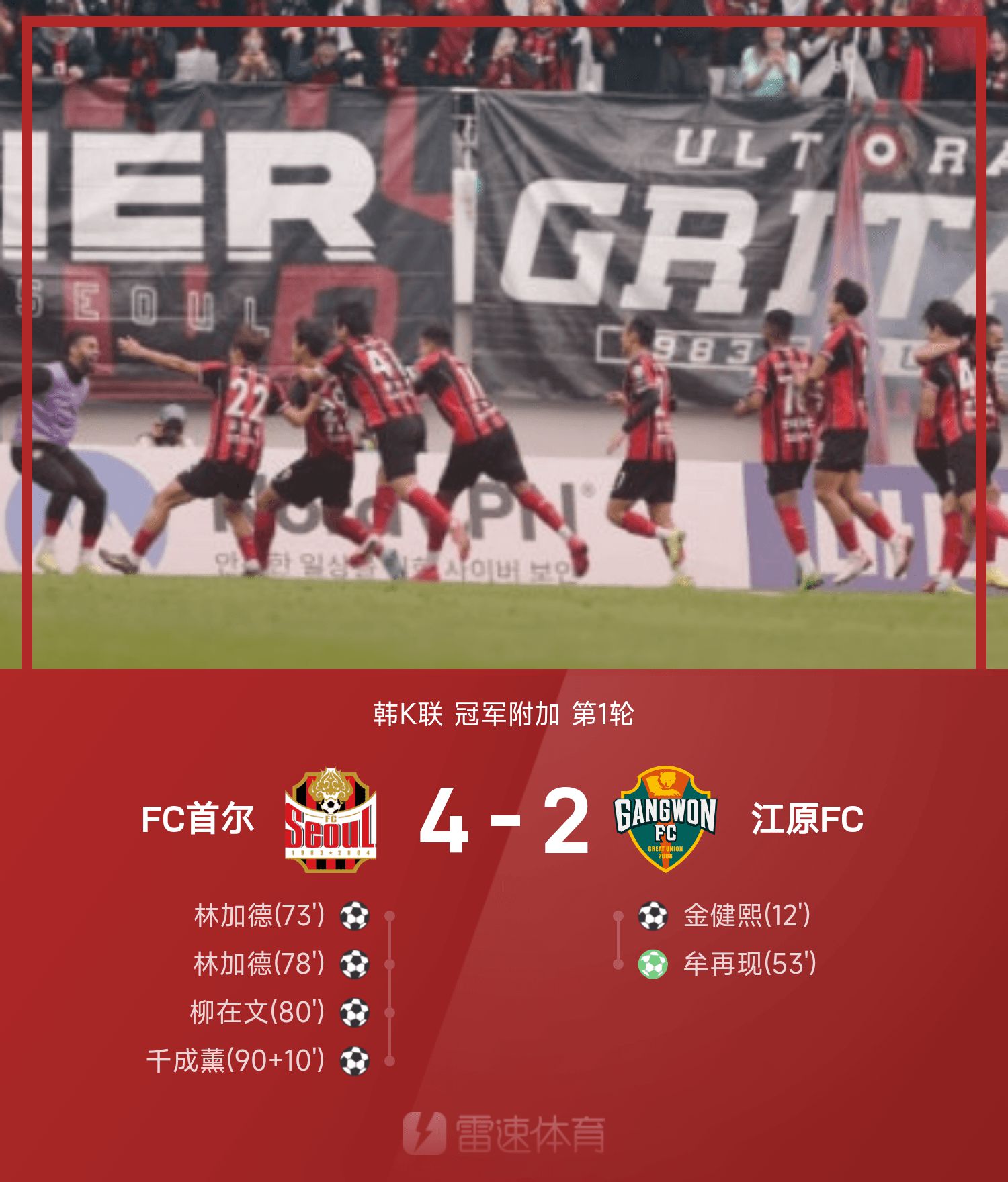 6686体育平台10月26日讯 25赛季韩K联冠军附加第1轮,FC首尔主队场以4-2逆转江原FC。金健熙和牟再现助江原曾取得2球优势;林加德梅开二度,柳在文和千成薰相继破门,助首尔以4-2逆转局赛果分。