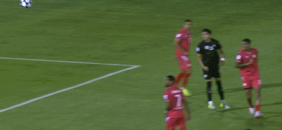 12’河内将自由球主罚到三秒区内,莱格利头槌被守门员直接得到