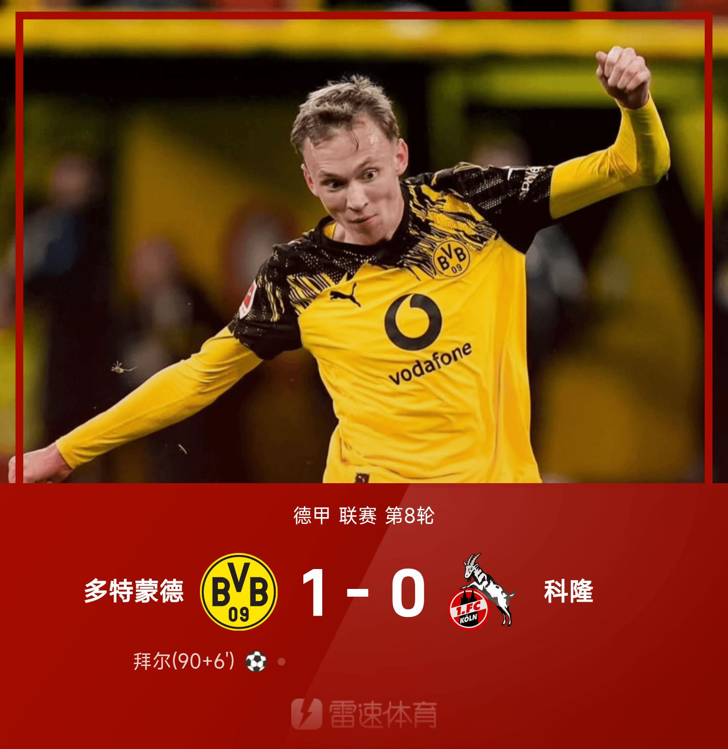 6686体育平台10月26日讯 25/26赛季德甲联赛事第8轮,多特蒙德1-0战胜科隆,拜尔第90+6分钟上演最后一投。全场竞赛,拜尔补时破门最后一投制胜,科隆守门员斯克韦伯屡献神扑难救主,赛义德·马拉屡失良机。