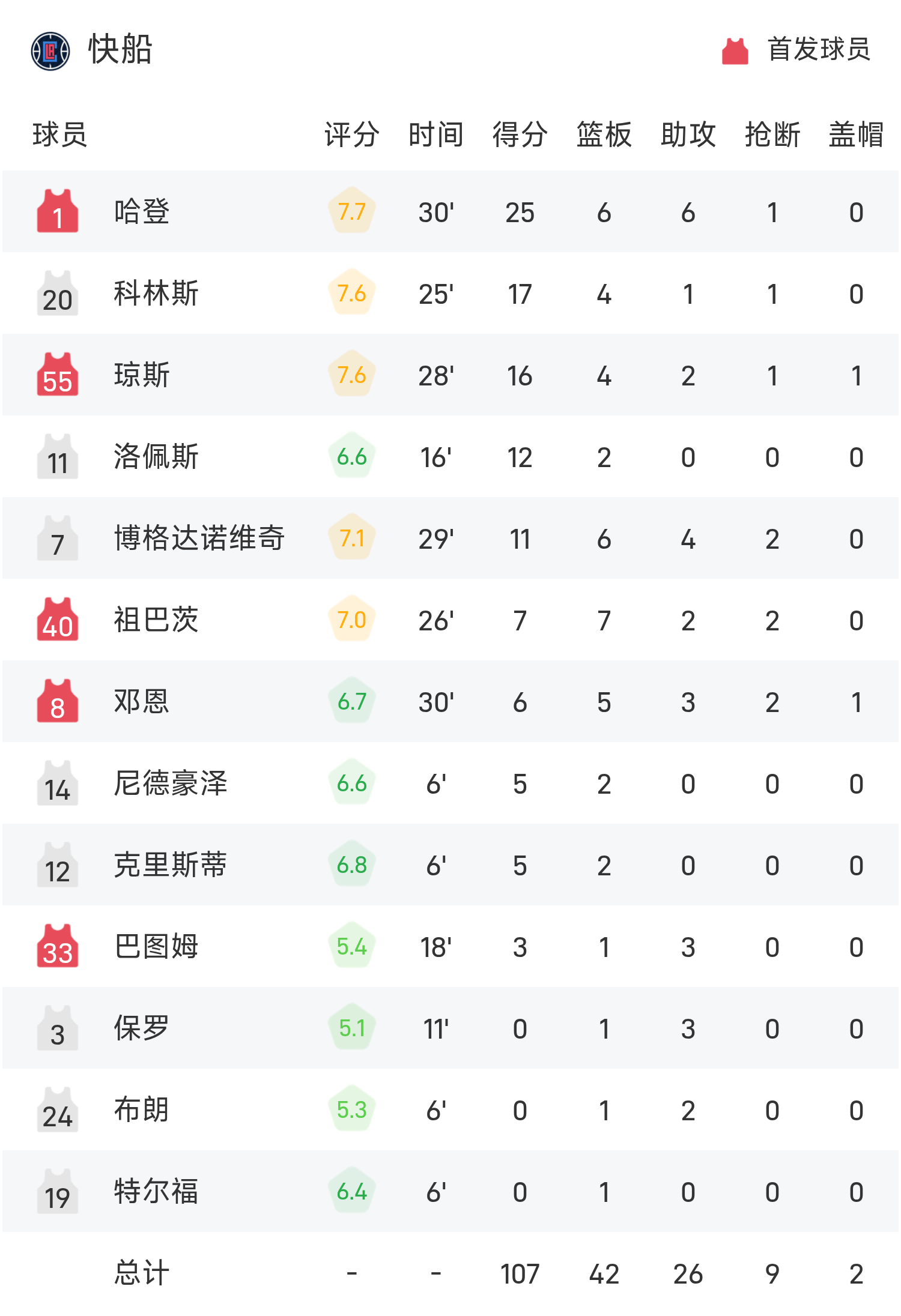 6686体育平台11月05日讯 25/26赛季NBA 常规赛,快船对阵雷霆。双方全场战罢,快船107-126不敌雷霆。亚历山大砍下全场最高的30分4板12助,率领雷霆胜利取胜,雷霆取得了开季8连胜。