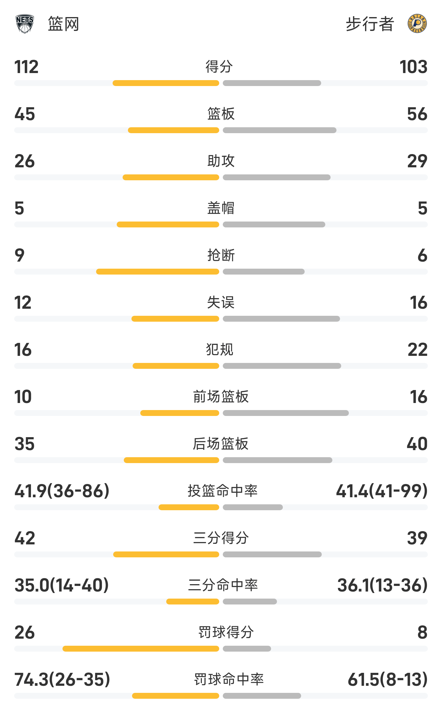 NBA战报:小波特32分10板,篮网112-103步行者