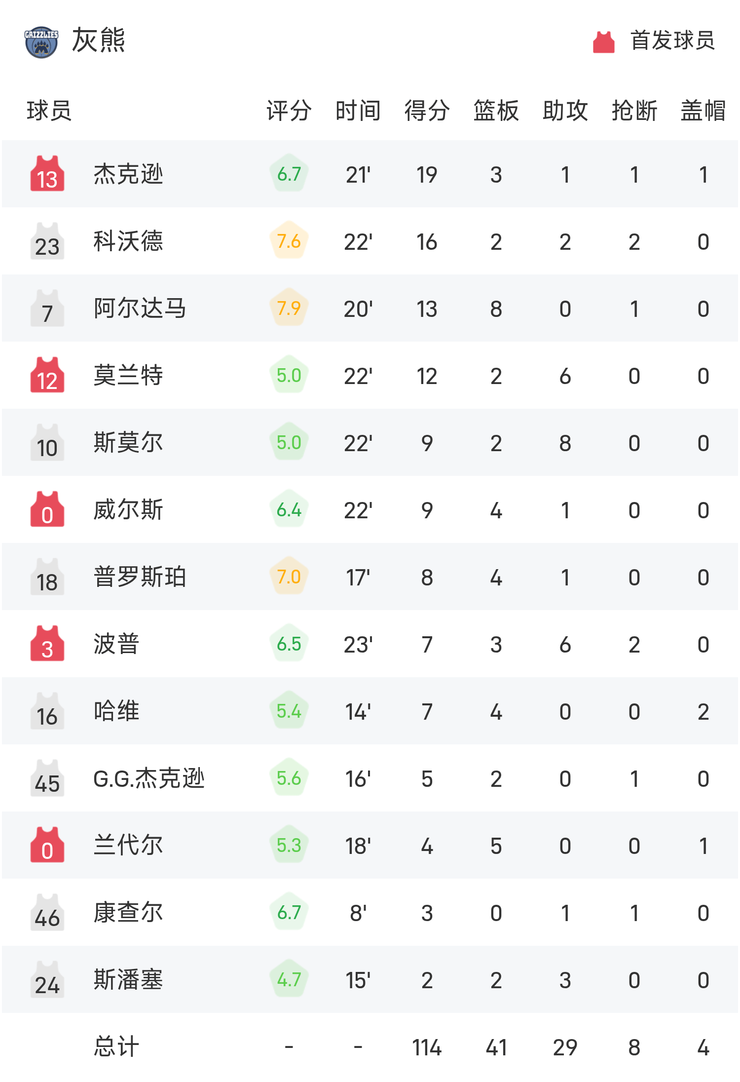 6686体育平台10月25日讯 25/26赛季NBA 常规赛,灰熊对阵热火。双方全场战罢,灰熊114-146不敌热火。阿德巴约砍下全场最高的24分5板4助,率领热火胜利取胜。