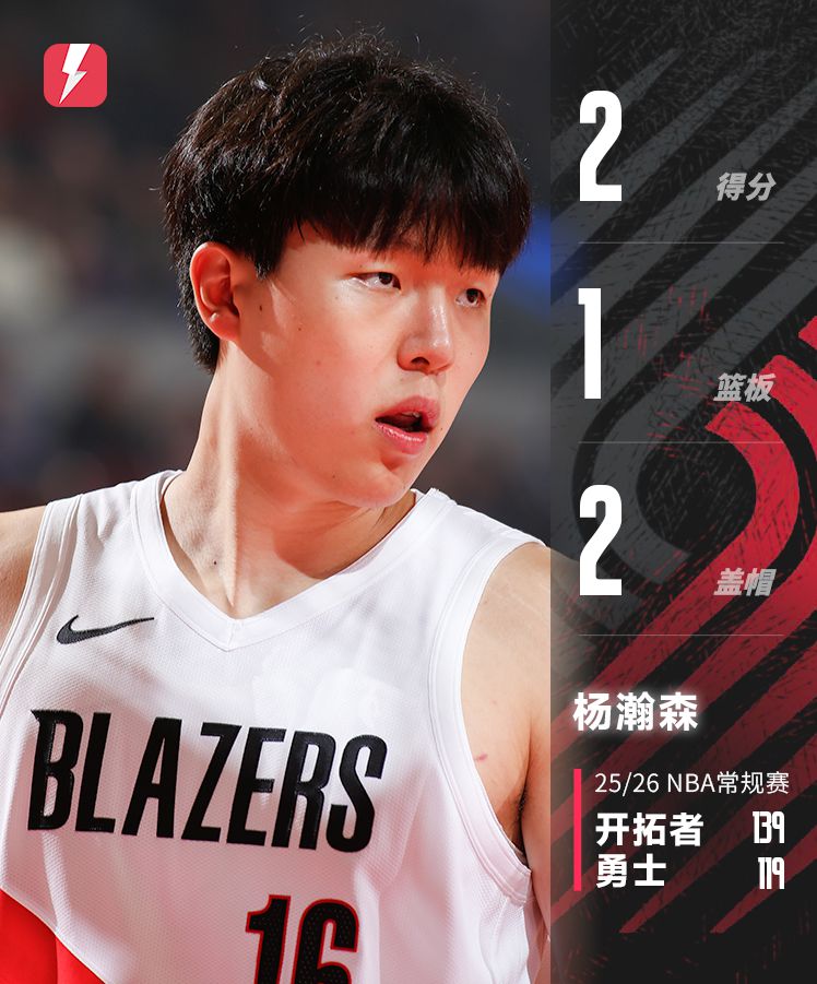 杨瀚森出战7分钟得到2分1抢篮板2封盖,开拓者取赛季首胜