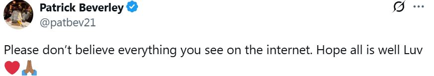 对此,贝弗利更新动态发文写道:“请不要相信你在网上看到的所有内容。愿一切安好,爱你们。”