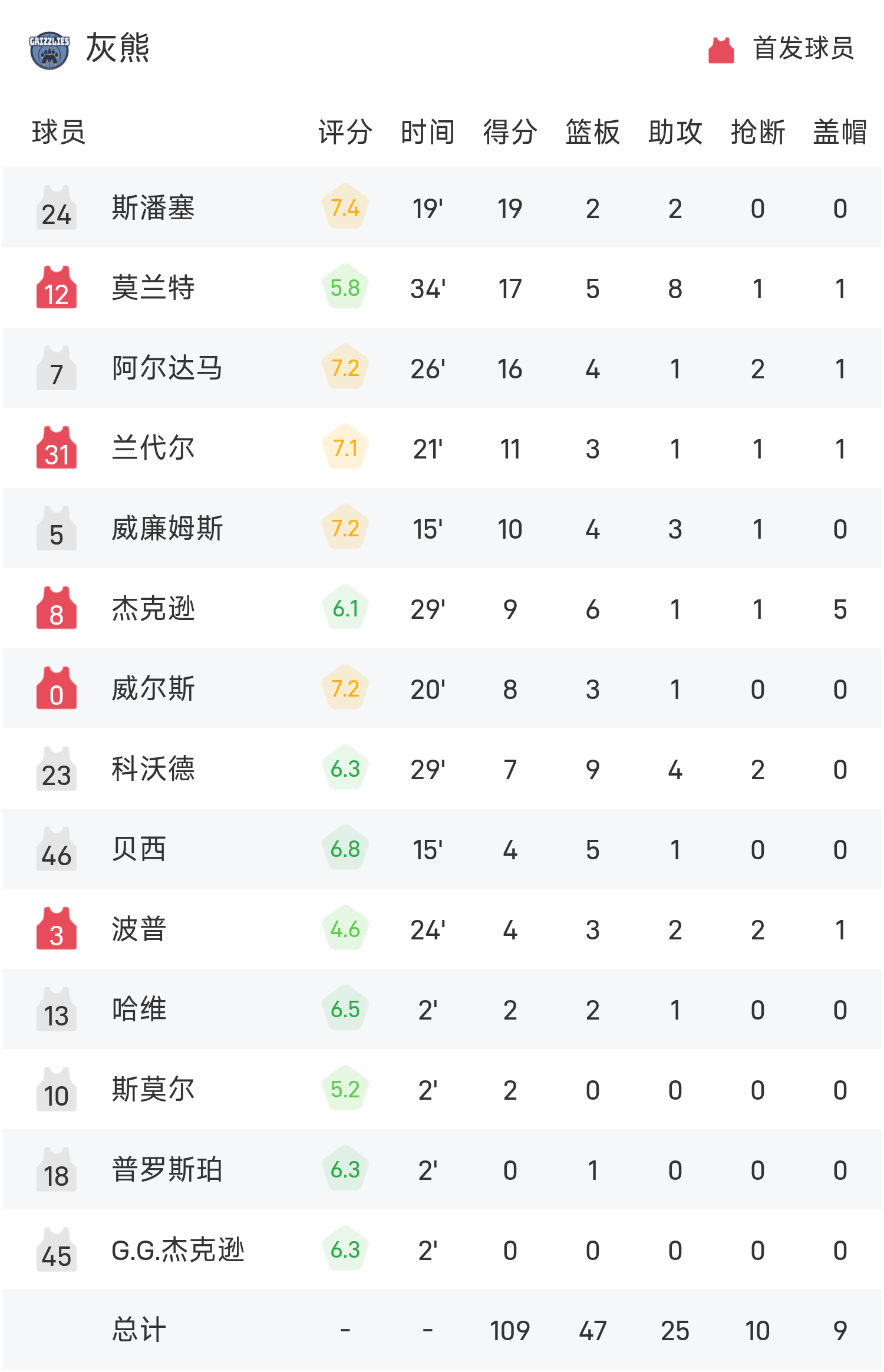 6686体育平台11月06日讯 25/26赛季NBA 常规赛,灰熊对阵火箭。双方全场战罢,灰熊109-124不敌火箭。阿门·汤普森砍下全场最高的28分10板7助,率领火箭胜利取胜。
